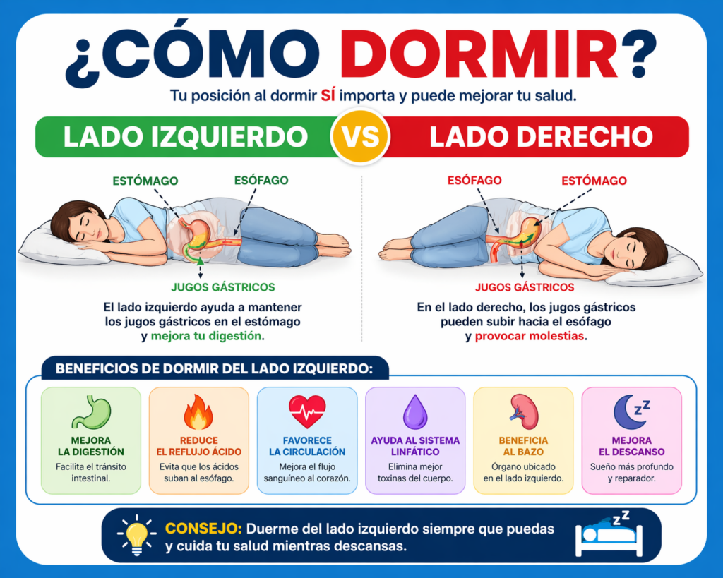 Dormir es una de las actividades más importantes para la salud, pero la posición en la que duermes también influye en tu bienestar. Una de las posturas más recomendadas por especialistas es dormir del lado izquierdo, ya que puede aportar múltiples beneficios al organismo.